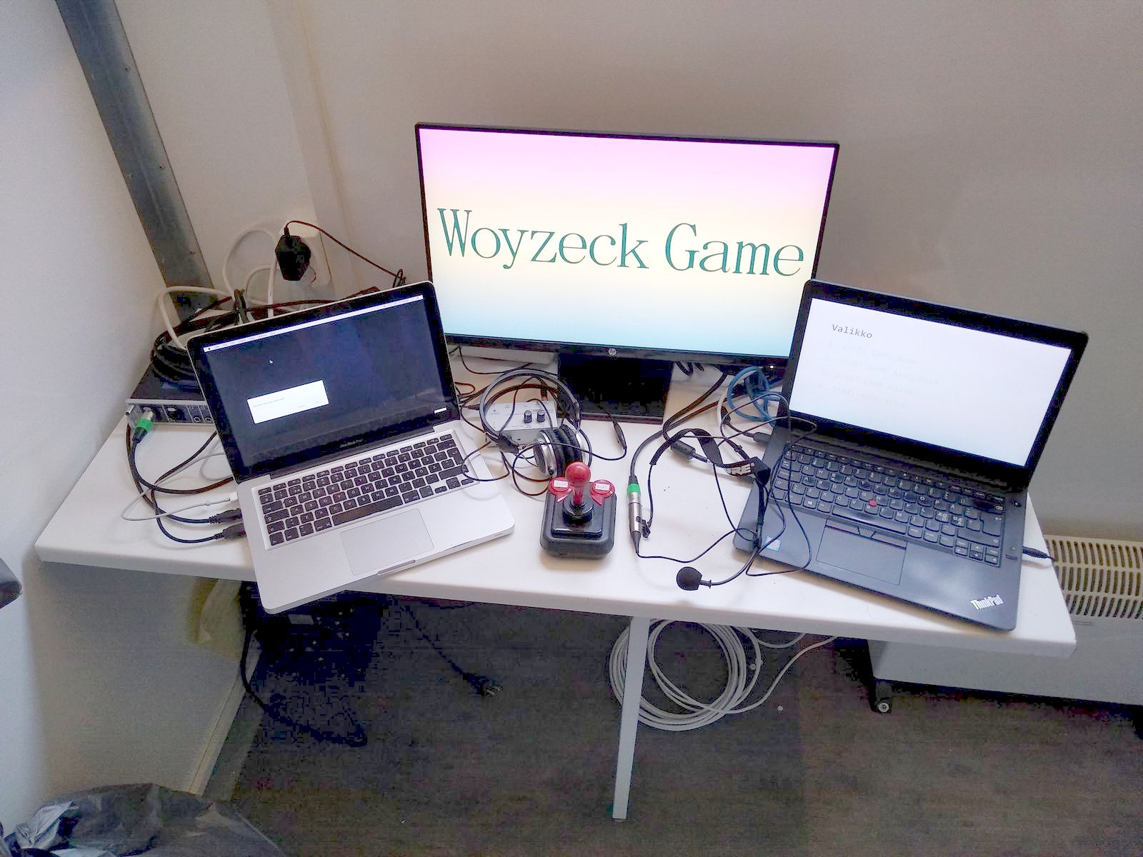 Woyzeck Game is a procedural game experience shared with the public, in which the public has the opportunity to participate as a viewer, gamer or game character. In the game-play, the audience has the opportunity to guide a human avatar game character by using remote-controlled-human technology (using earphones, a microphone and a video connection), or try out how it feels like to act as a game character.