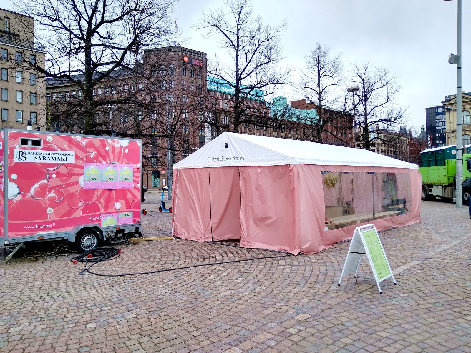 A performance where the performer is controlled by audience member through videogame interface. Performance took place at Railway Square in Helsinki in April 2022.